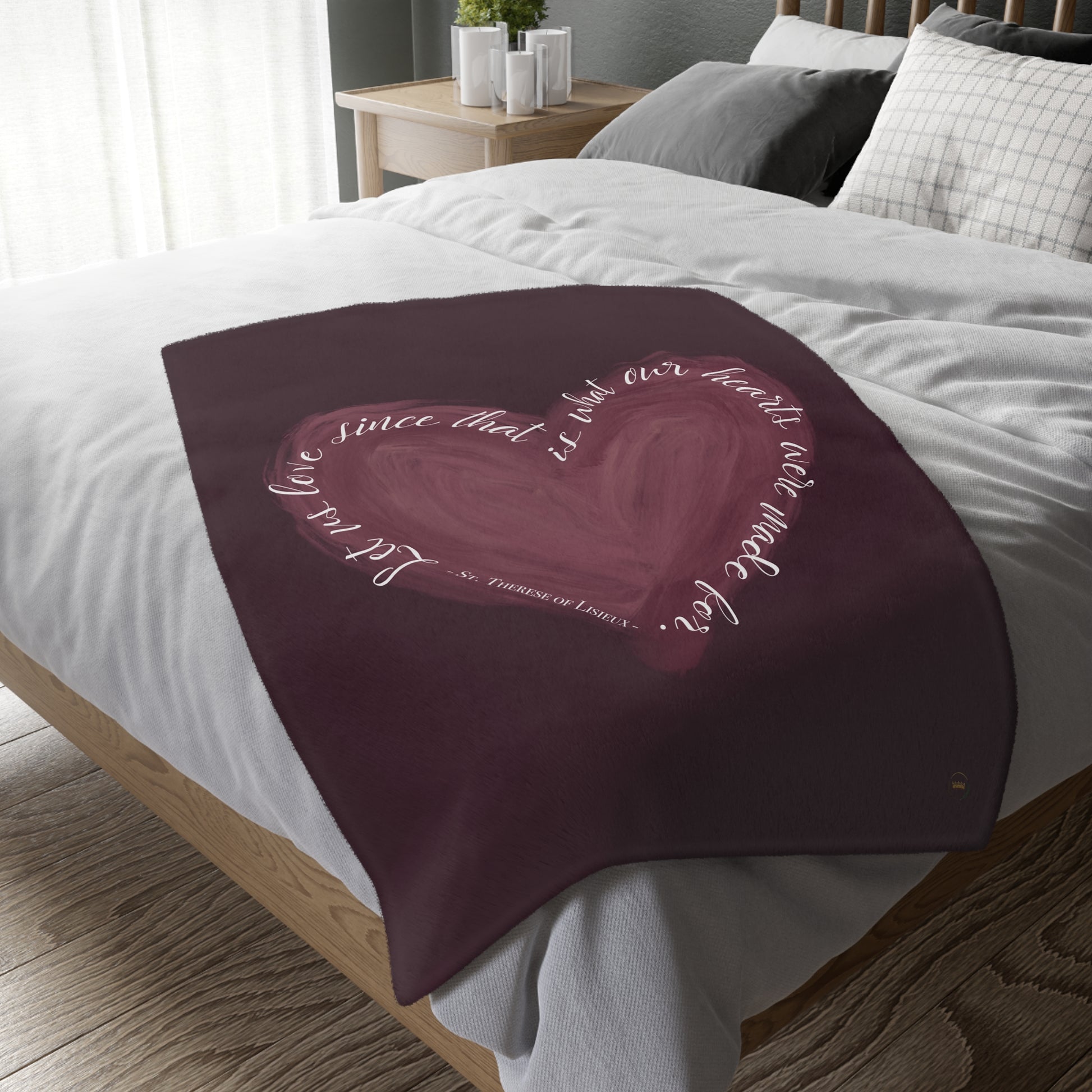 Introducing the Let Us Love Minky Blanket! This beautifully designed blanket is the perfect addition to your baby's nursery, with a quote from St. Therese of Lisieux that will inspire a sense of warmth and love.