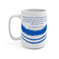 This white 15oz mug, lined with gentle Marian blue, carries one of Mother Teresa’s most grounding reminders: