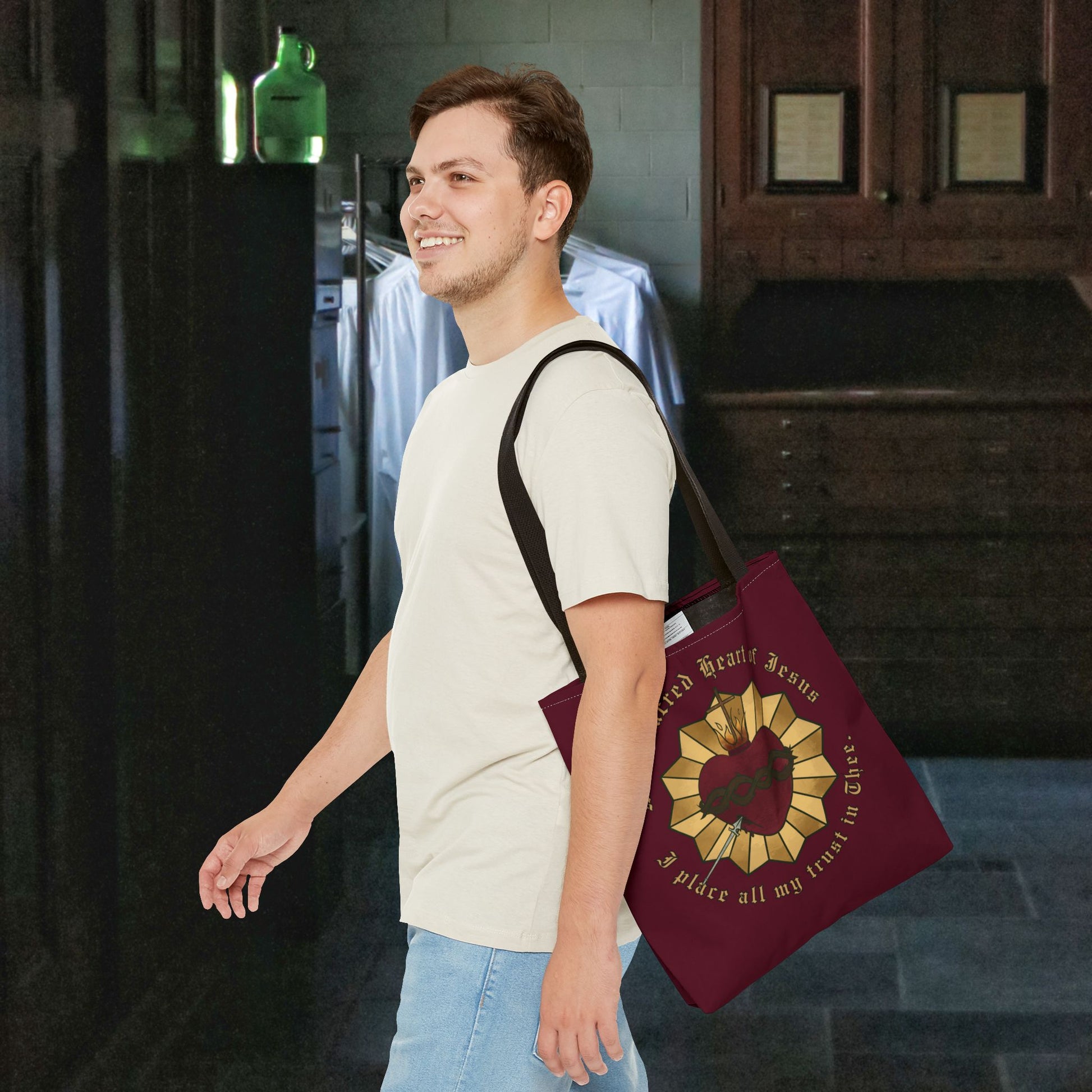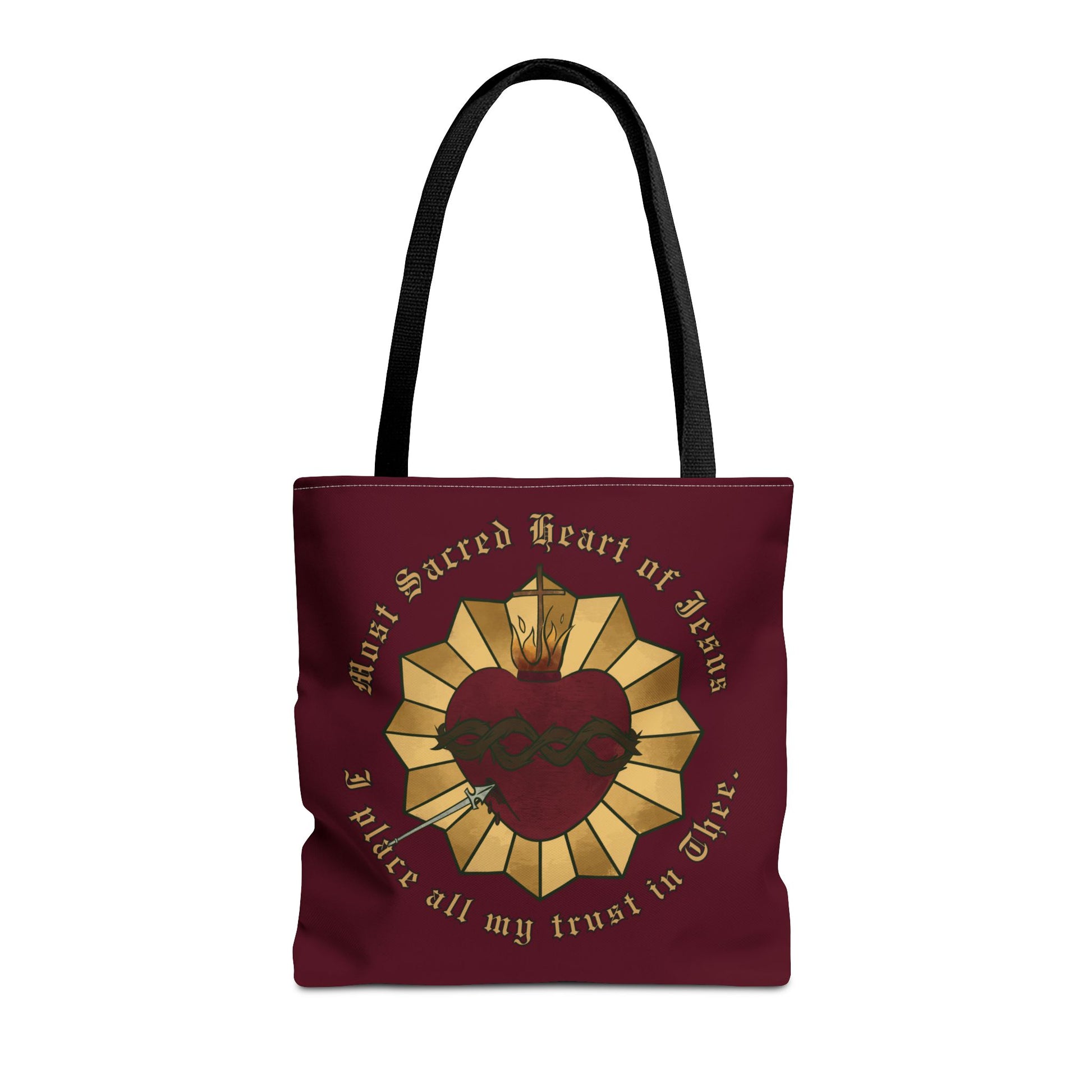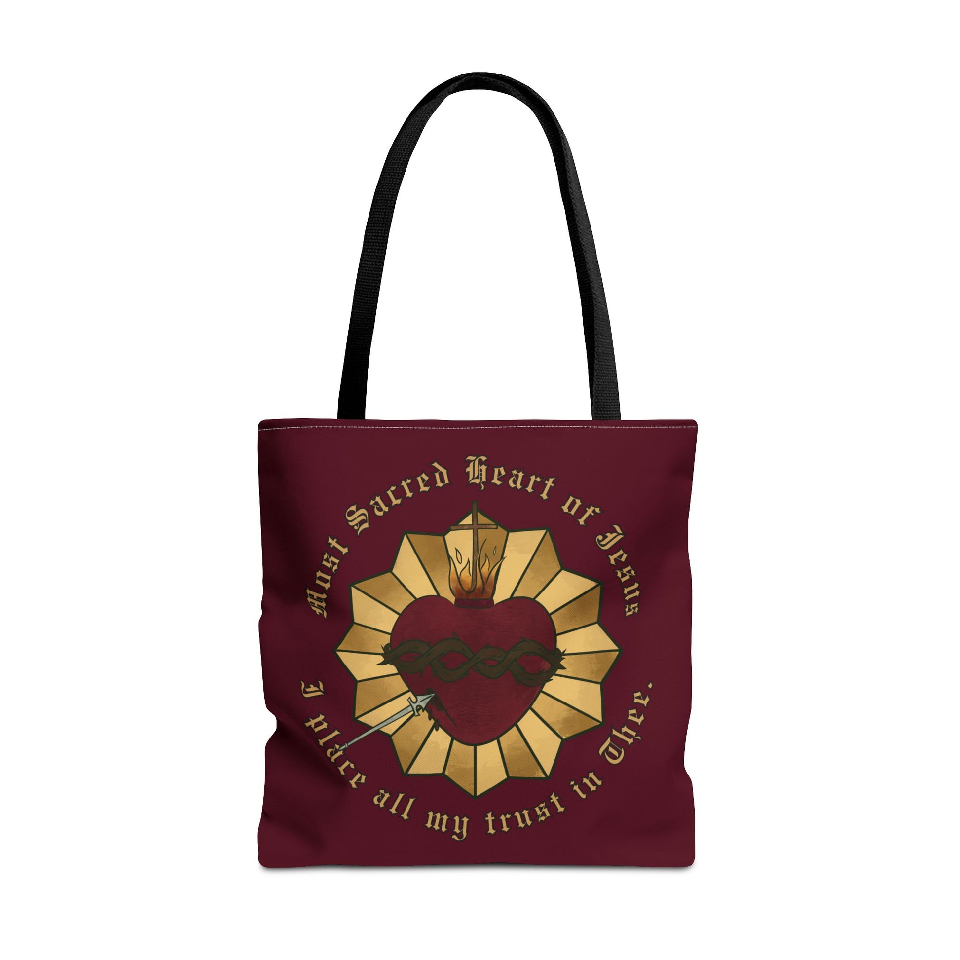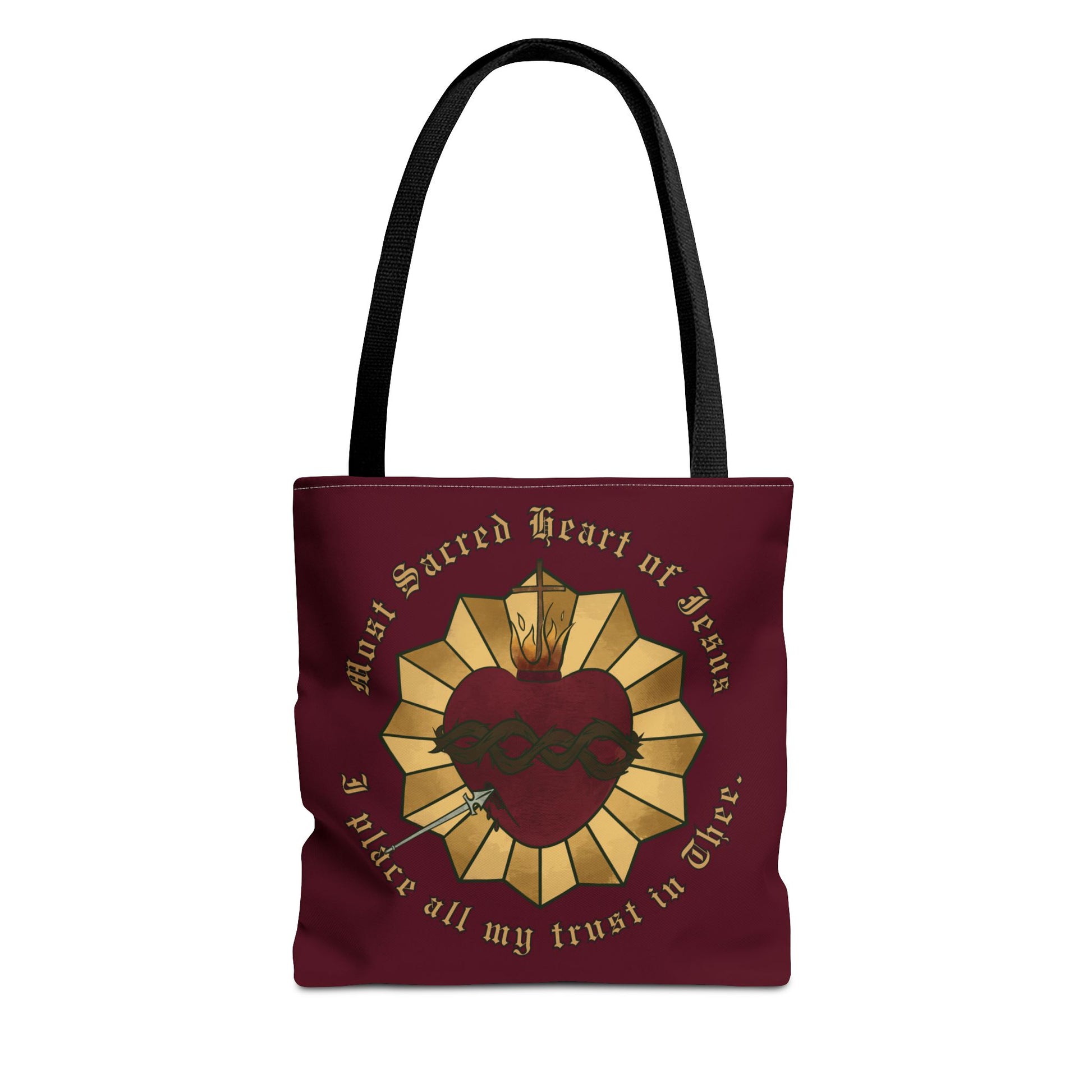 The perfect Sacred Heart bag has arrived!! Pack all your prayer necessities in this beautiful bag big enough for a Bible, Rosary, and journal! This practical, high-quality Tote Bag is available in three sizes making it the perfect gift. Made from reliable materials, lasting for years. See the size chart below to make the best selection to fit your needs.