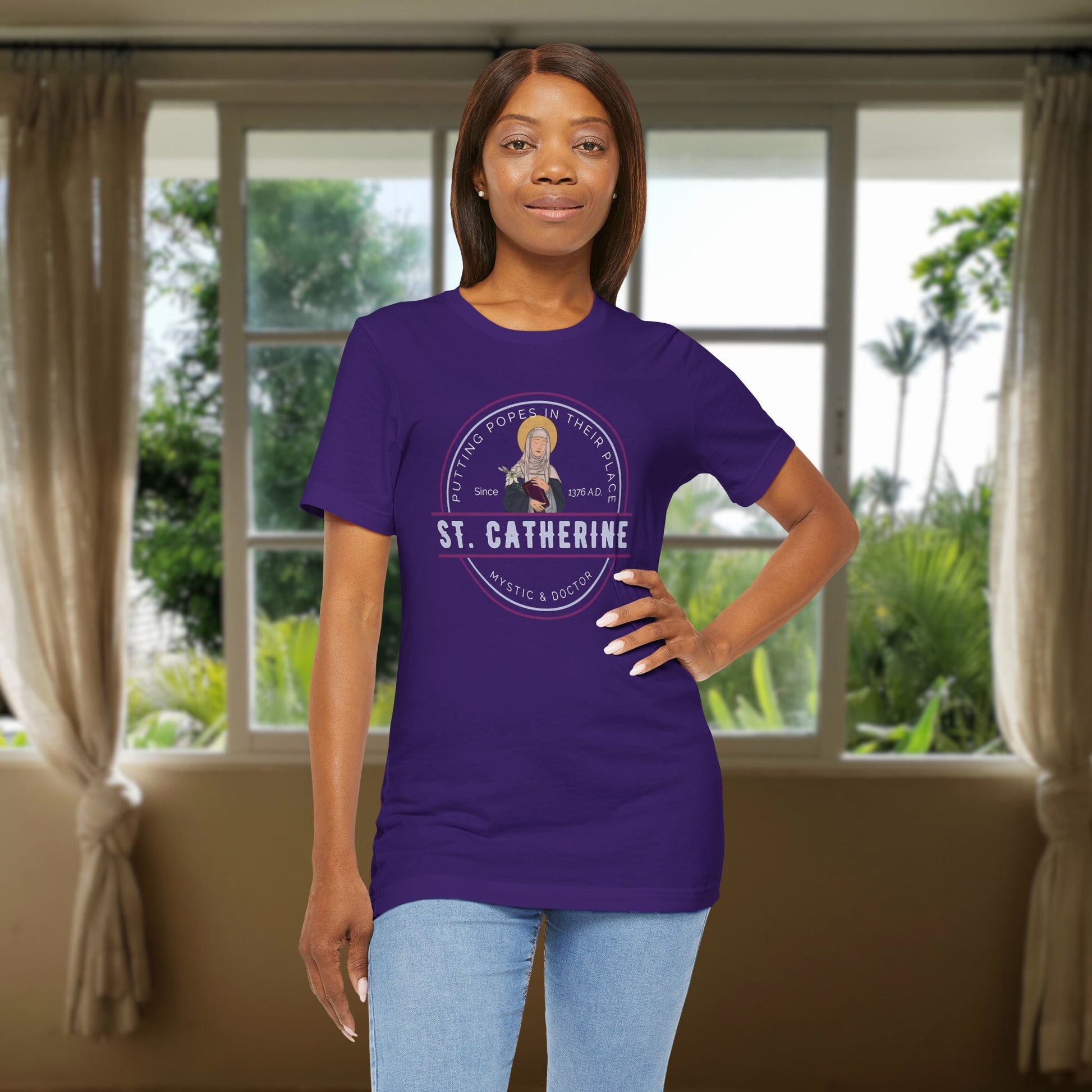Wear this shirt as a reminder of your own call to bold faith and to let St. Catherine’s example encourage you to stand firm in truth and love.