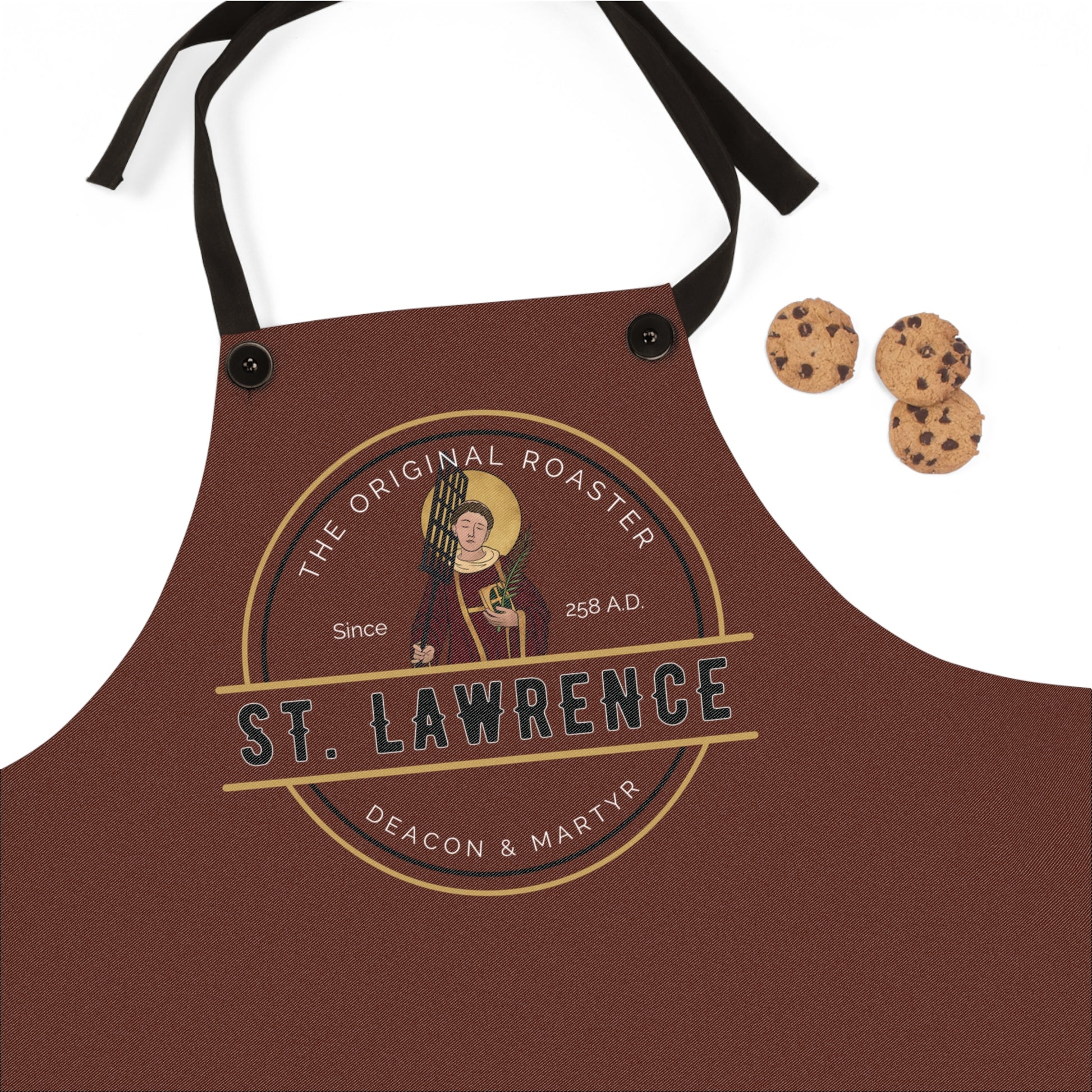 Bring St. Lawrence’s bold humor and fearless faith into your daily life with this inspiring and conversation-starting apron.