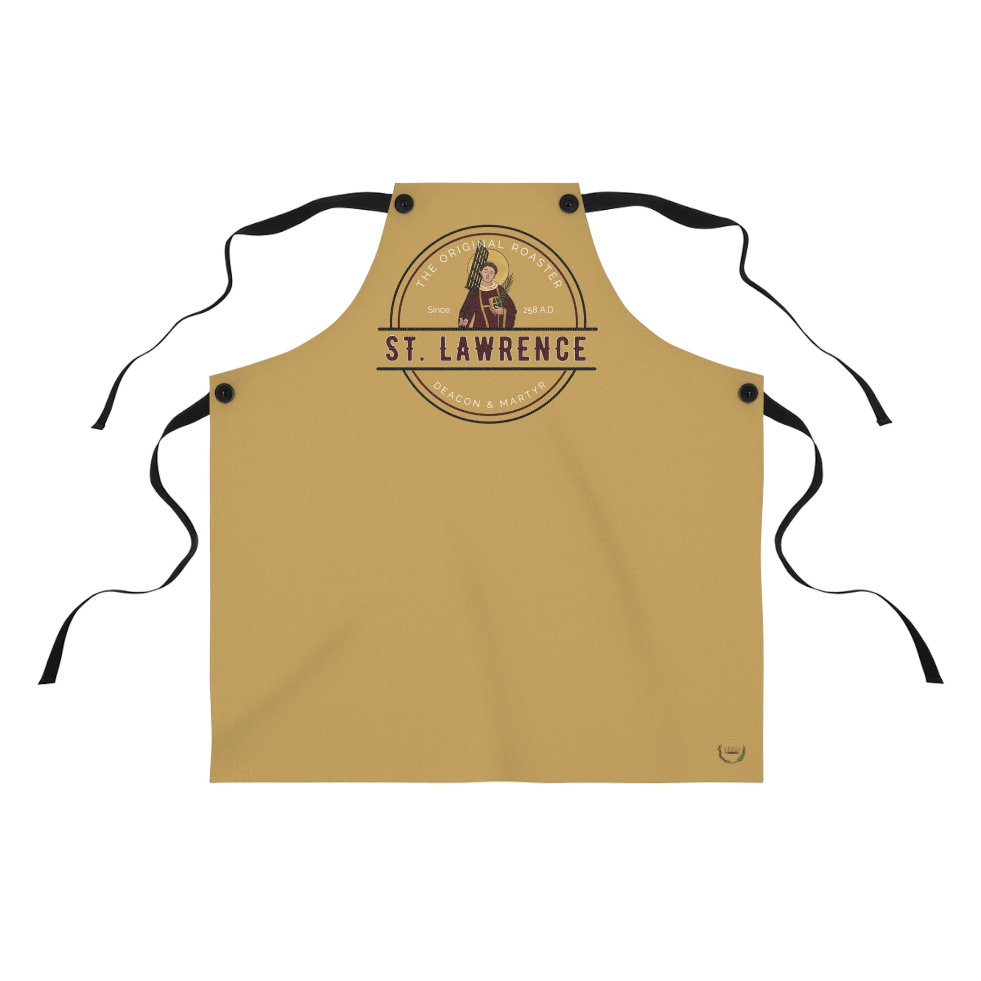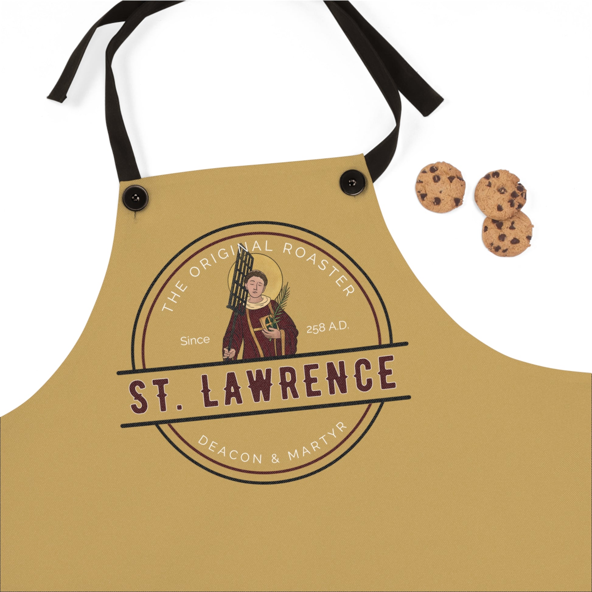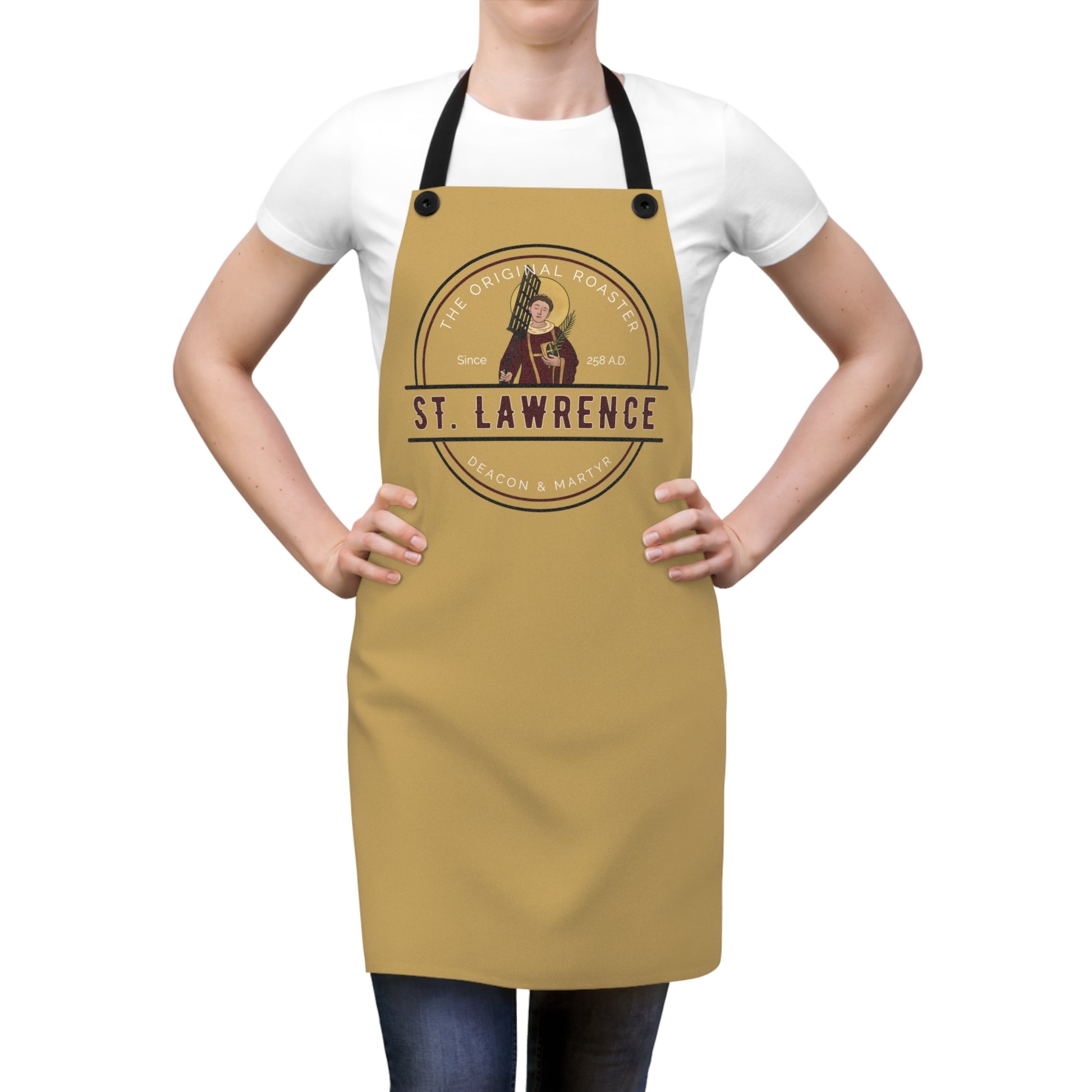 Bring St. Lawrence’s bold humor and fearless faith into your daily life with this inspiring and conversation-starting apron.