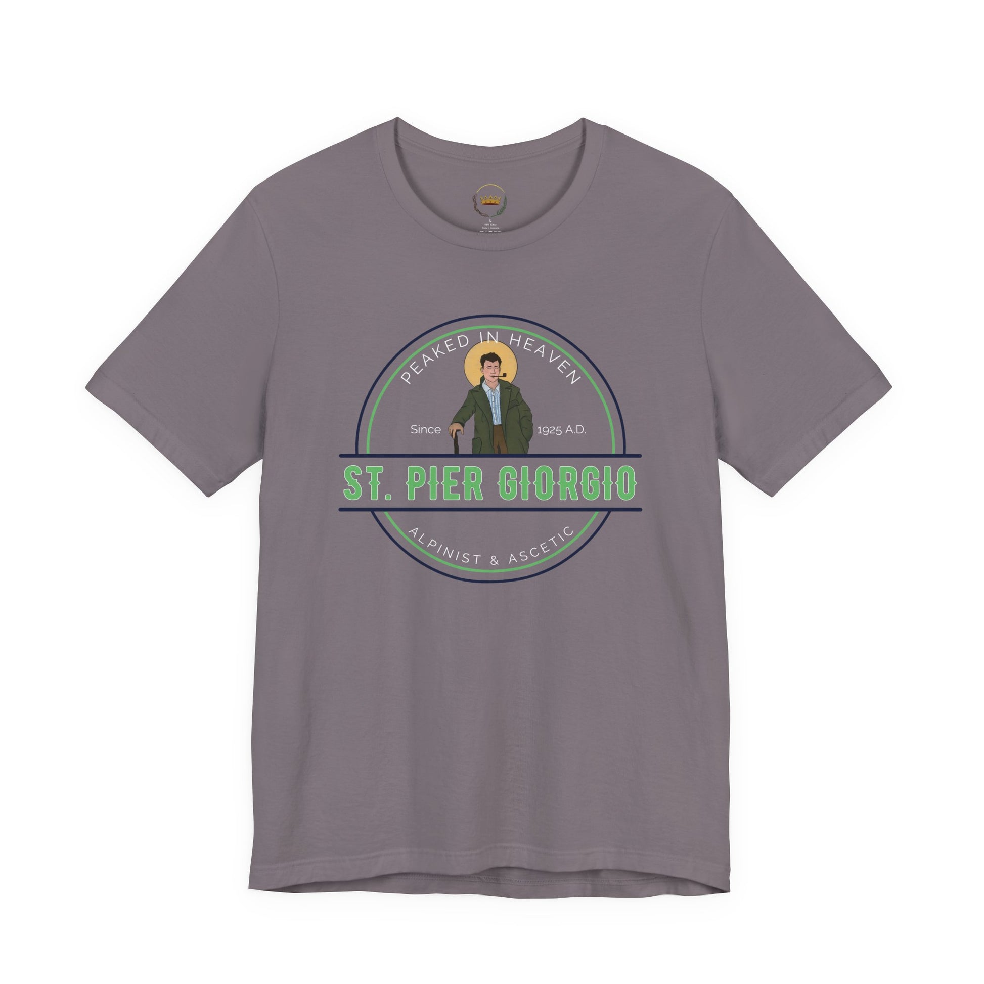 Perfect for Catholics who admire Pier Giorgio’s joyful spirit and courage, this tee makes a meaningful gift for hikers, college students, or anyone climbing toward holiness.