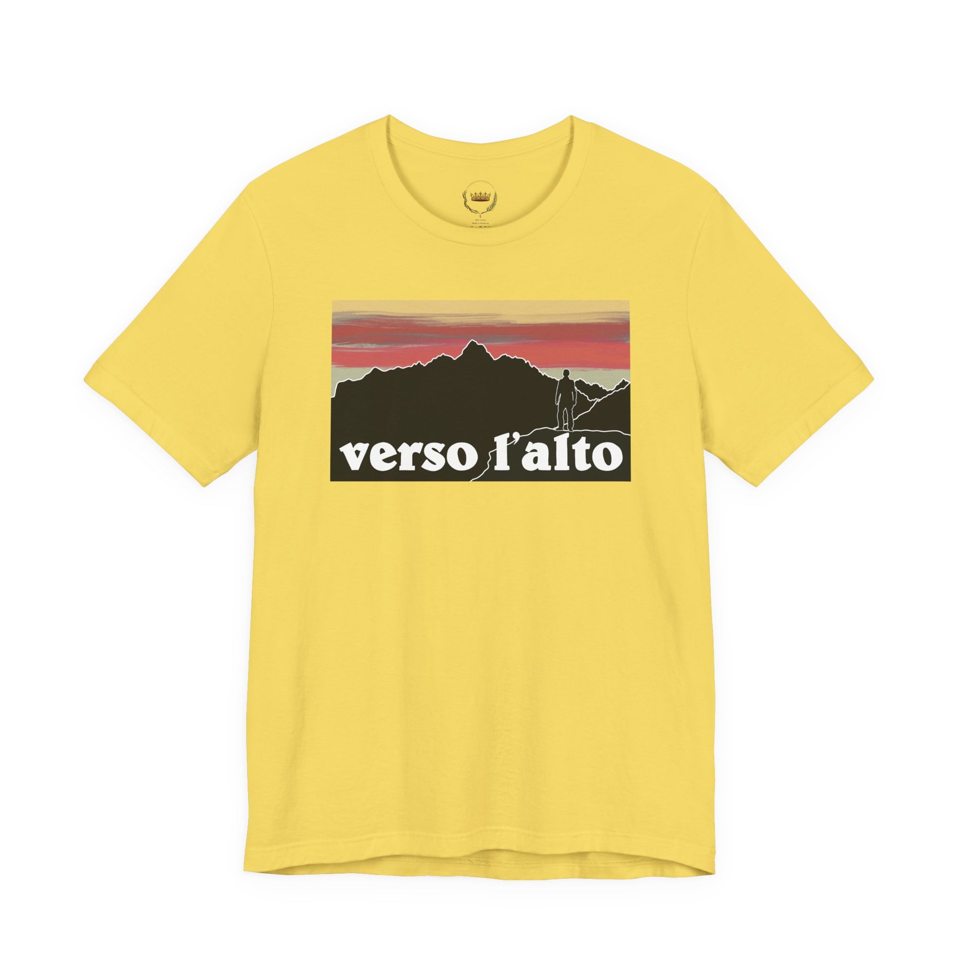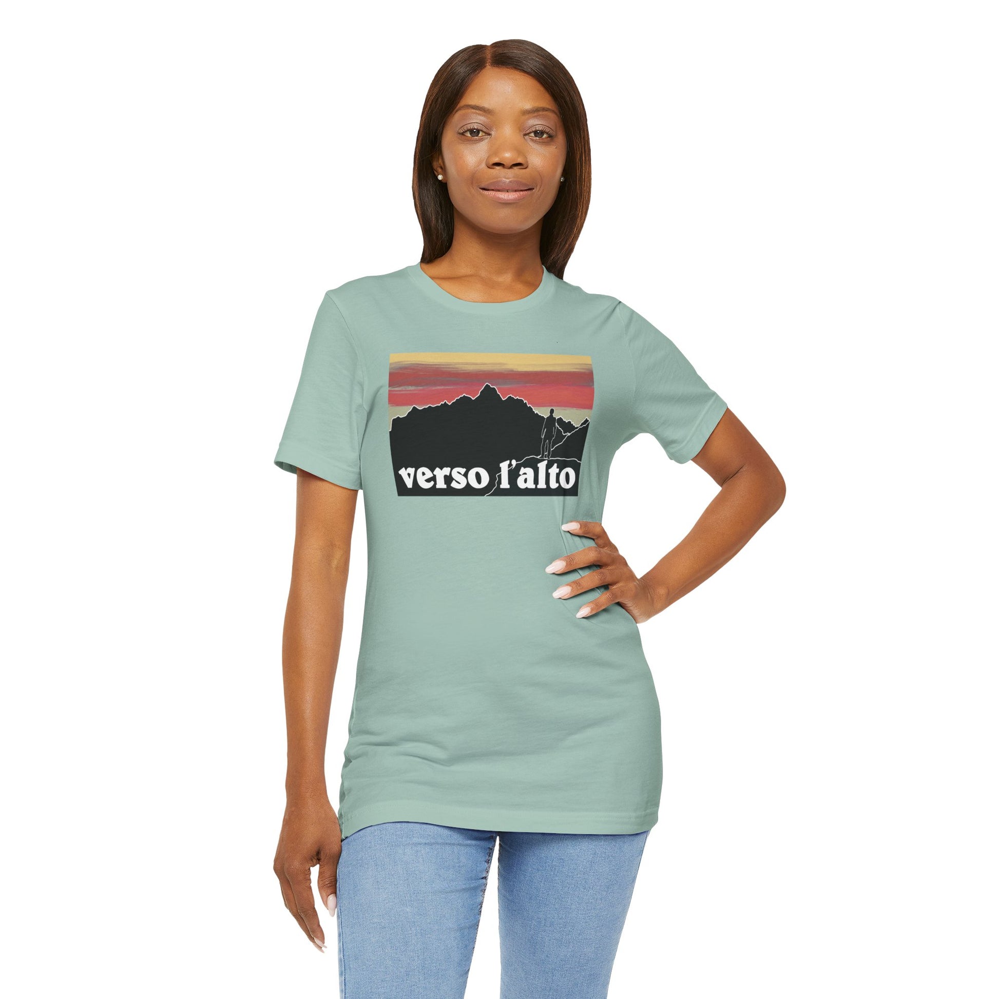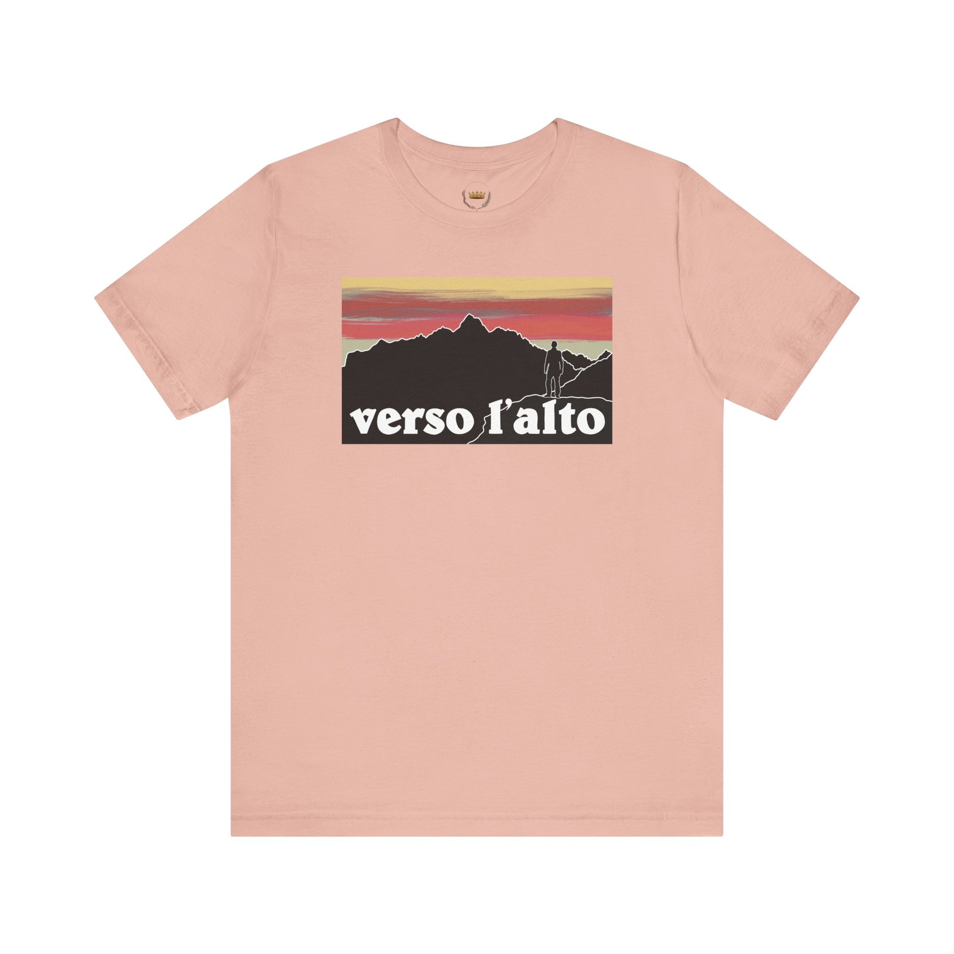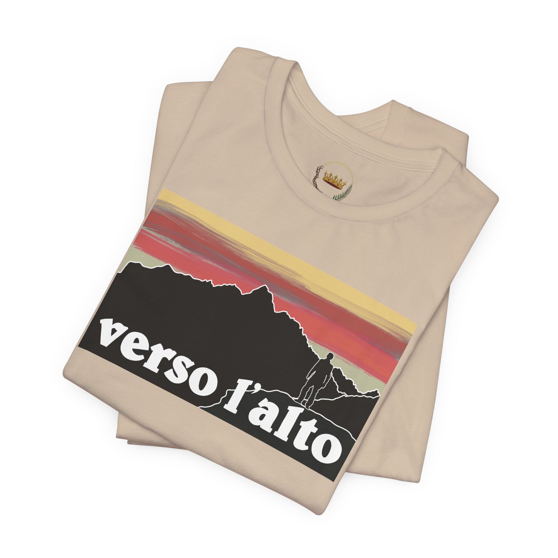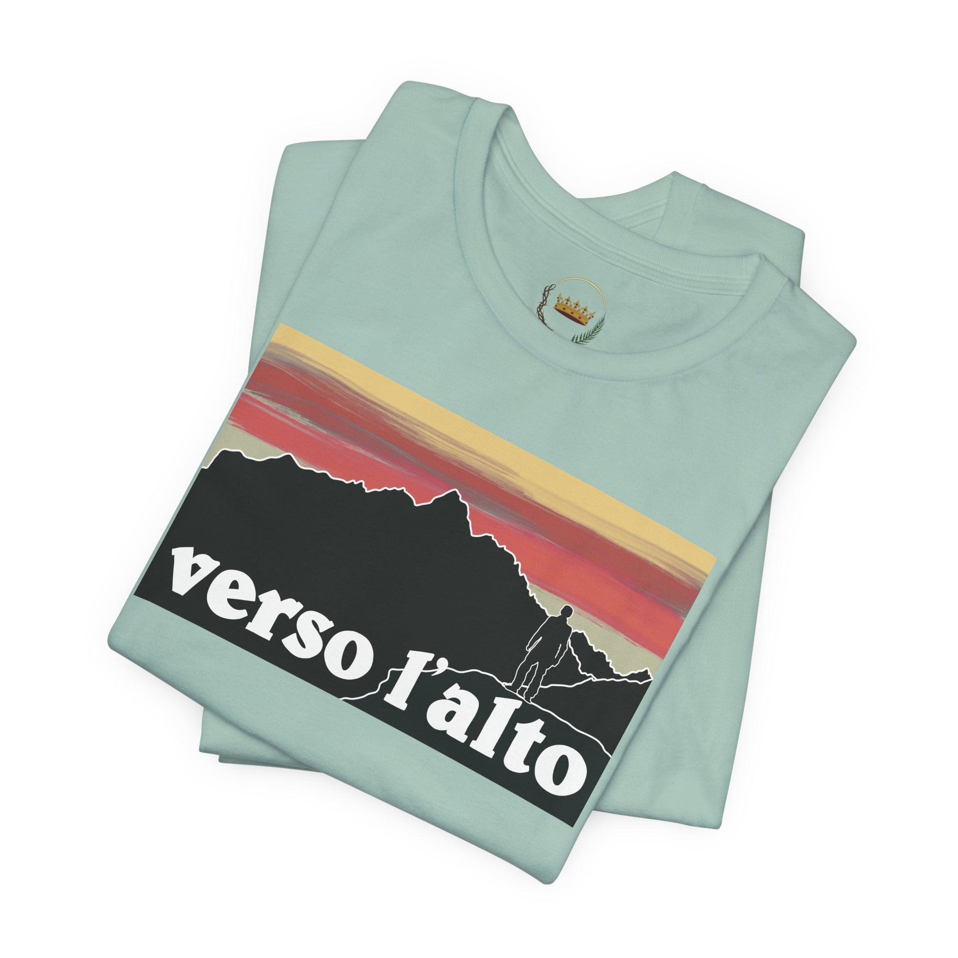 Climb higher in both style and spirit with this Verso l’Alto short sleeve t-shirt, inspired by St. Pier Giorgio Frassati’s famous motto, “To the heights.” Whether you’re hiking the trails, heading to class, or gathering with friends, this tee reminds you to live boldly and faithfully.