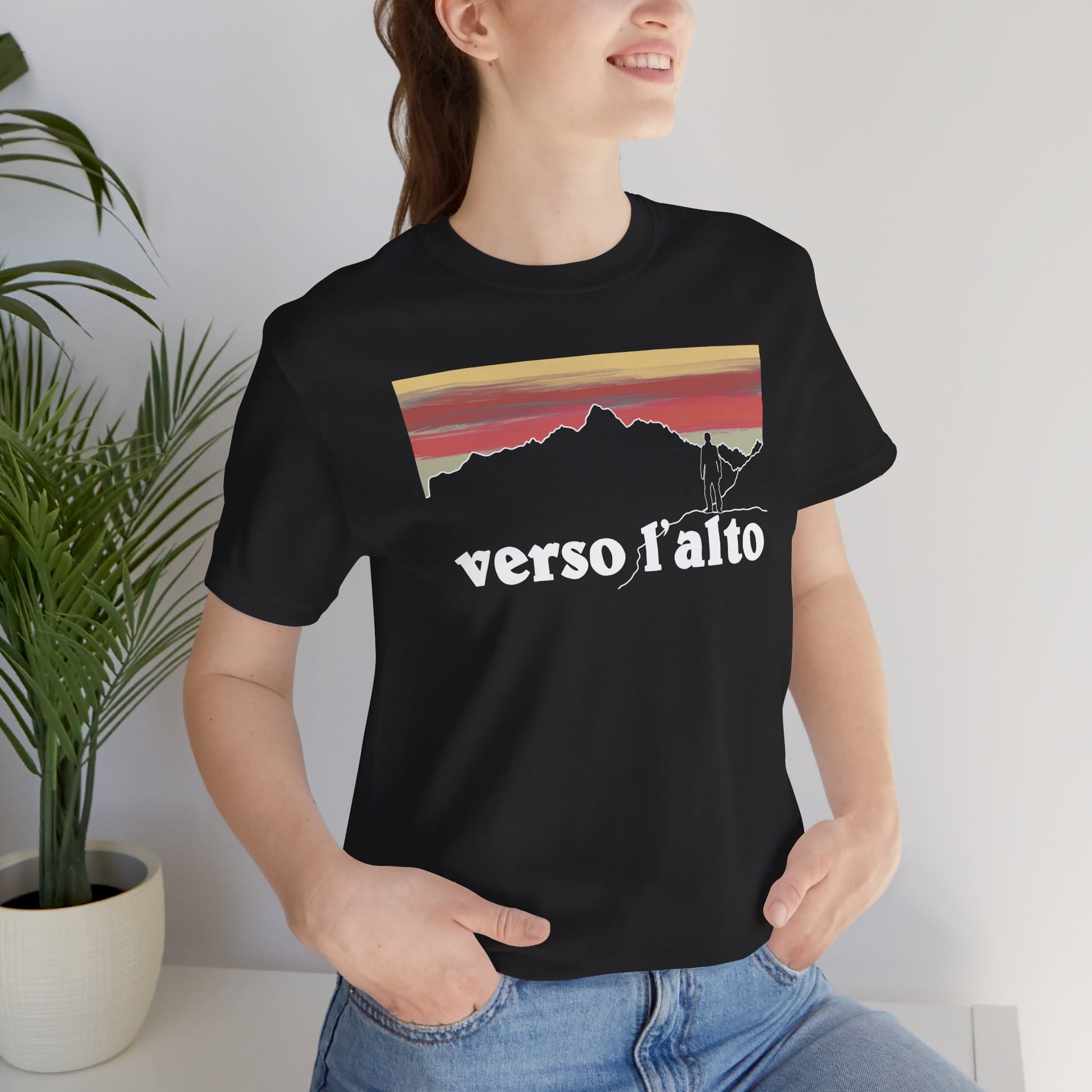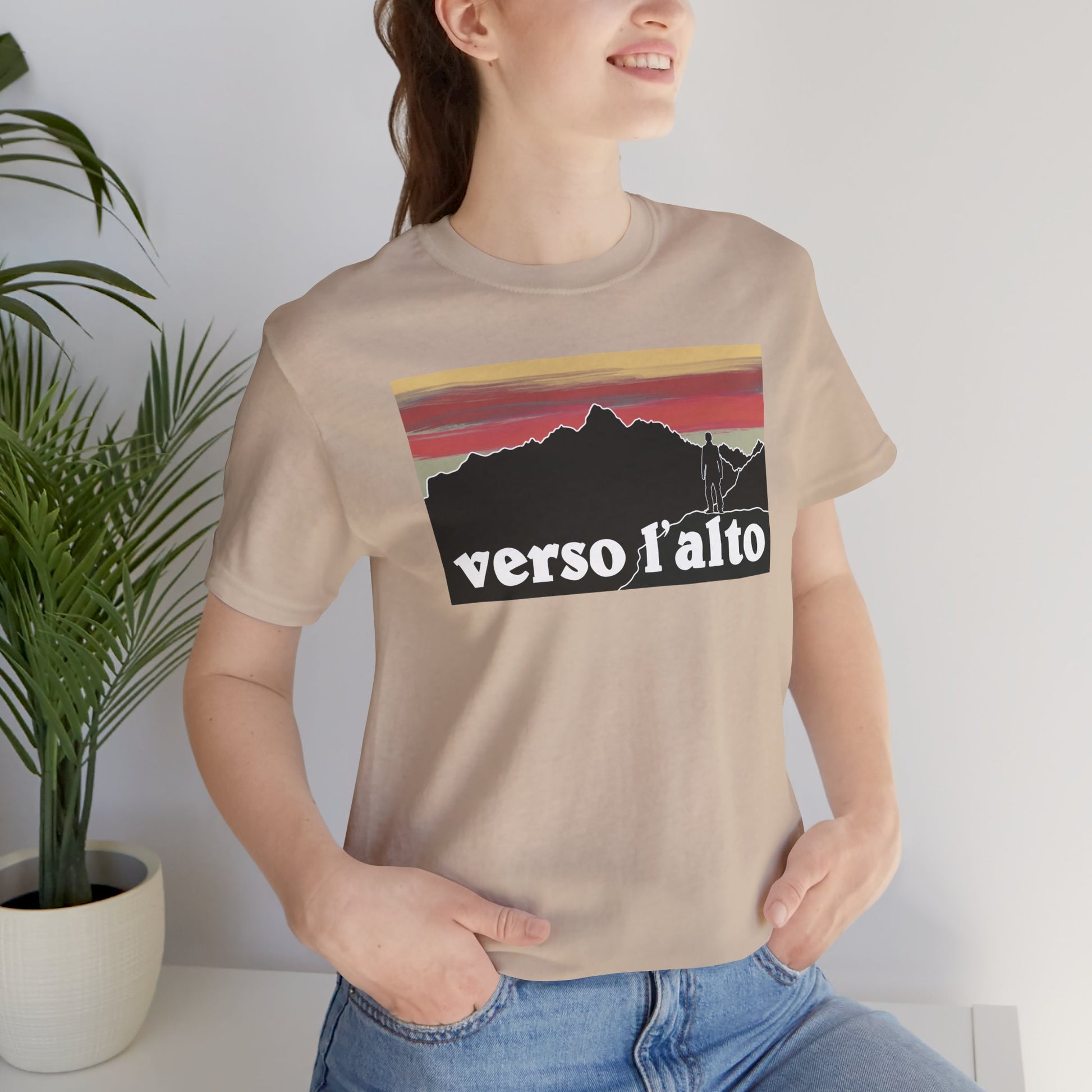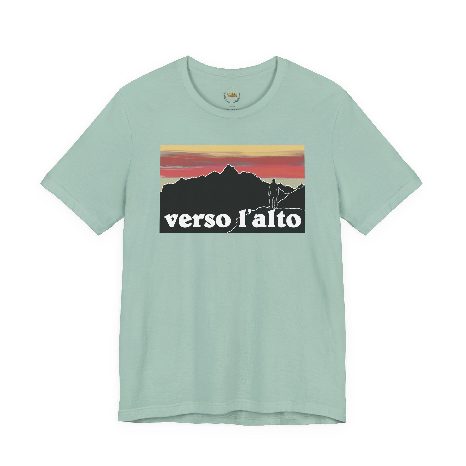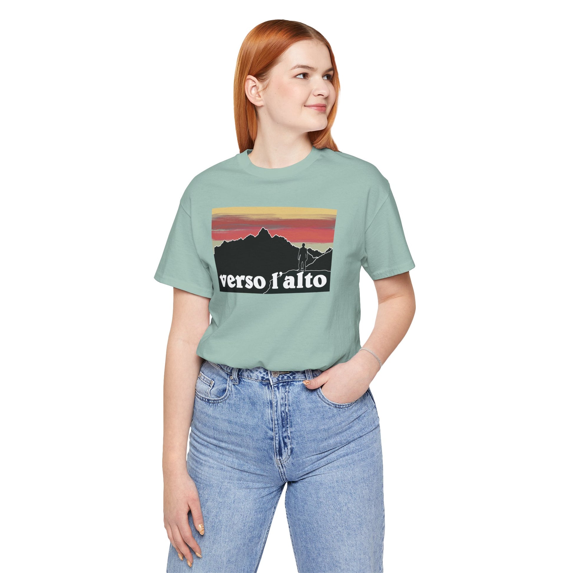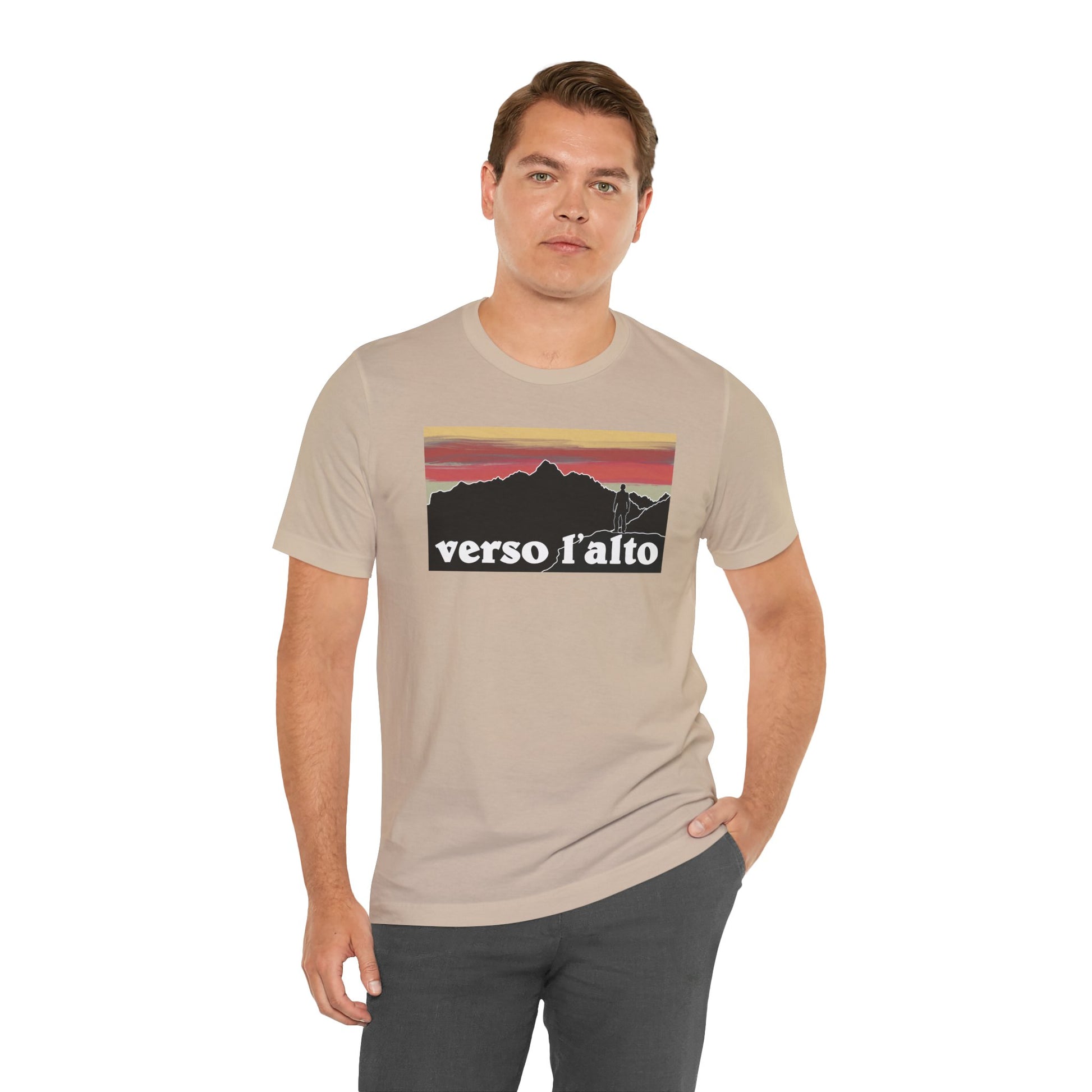 Climb higher in both style and spirit with this Verso l’Alto short sleeve t-shirt, inspired by St. Pier Giorgio Frassati’s famous motto, “To the heights.” Whether you’re hiking the trails, heading to class, or gathering with friends, this tee reminds you to live boldly and faithfully.