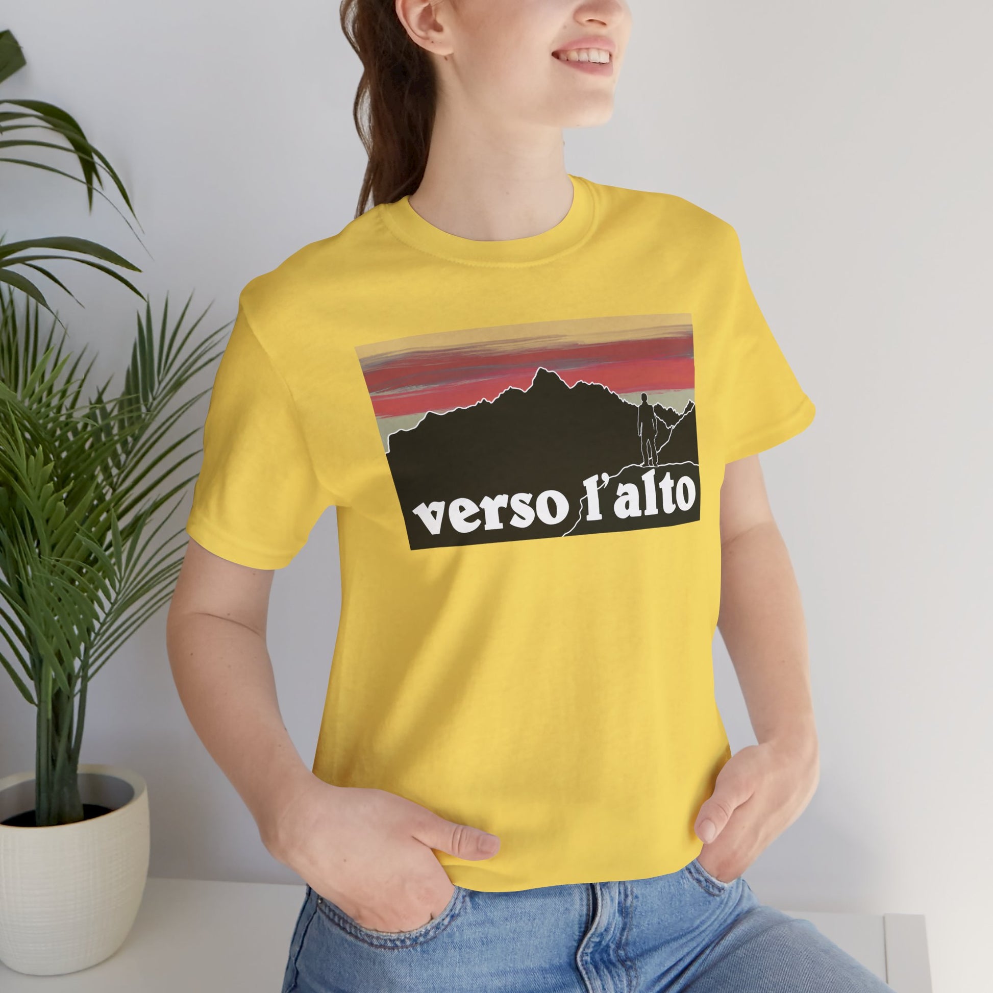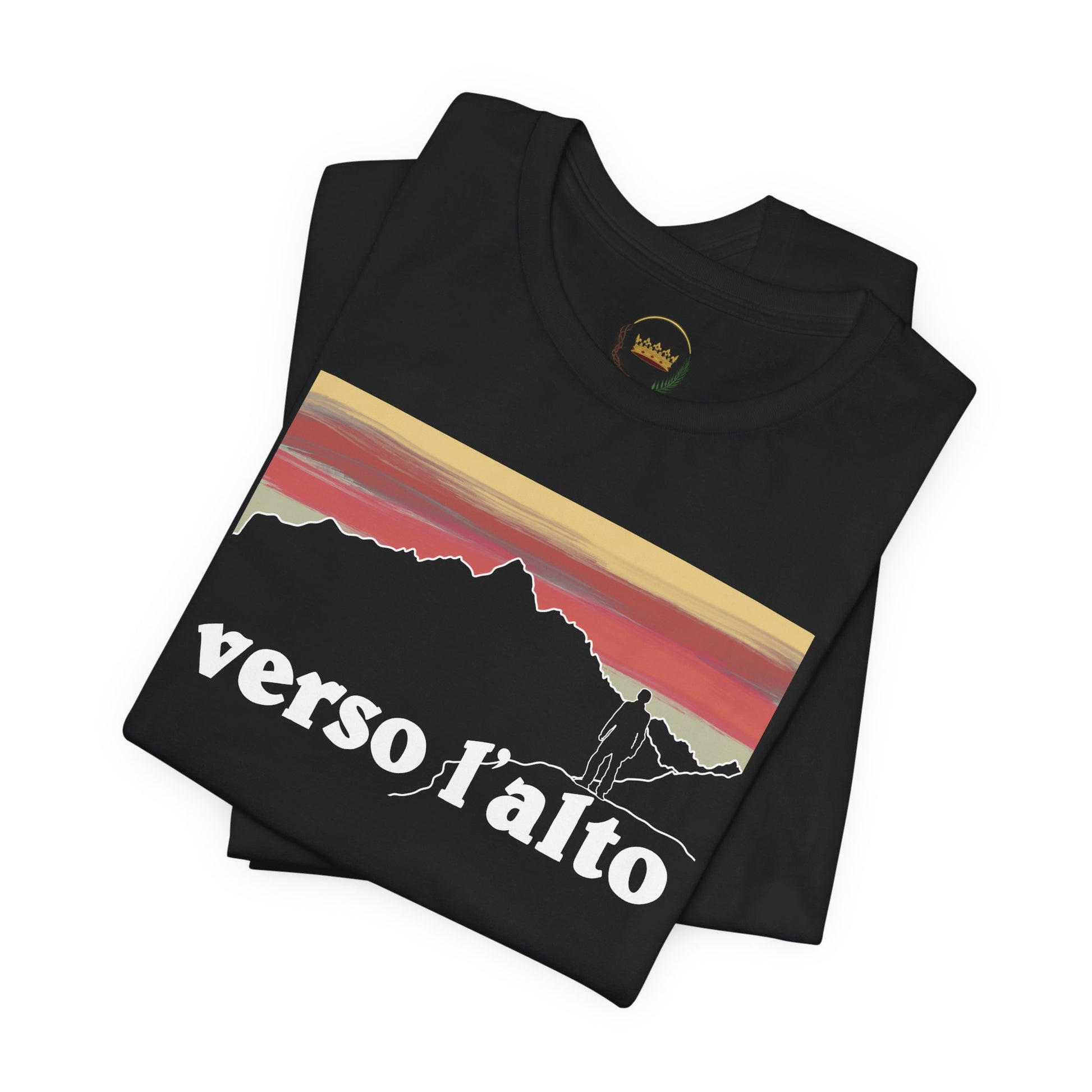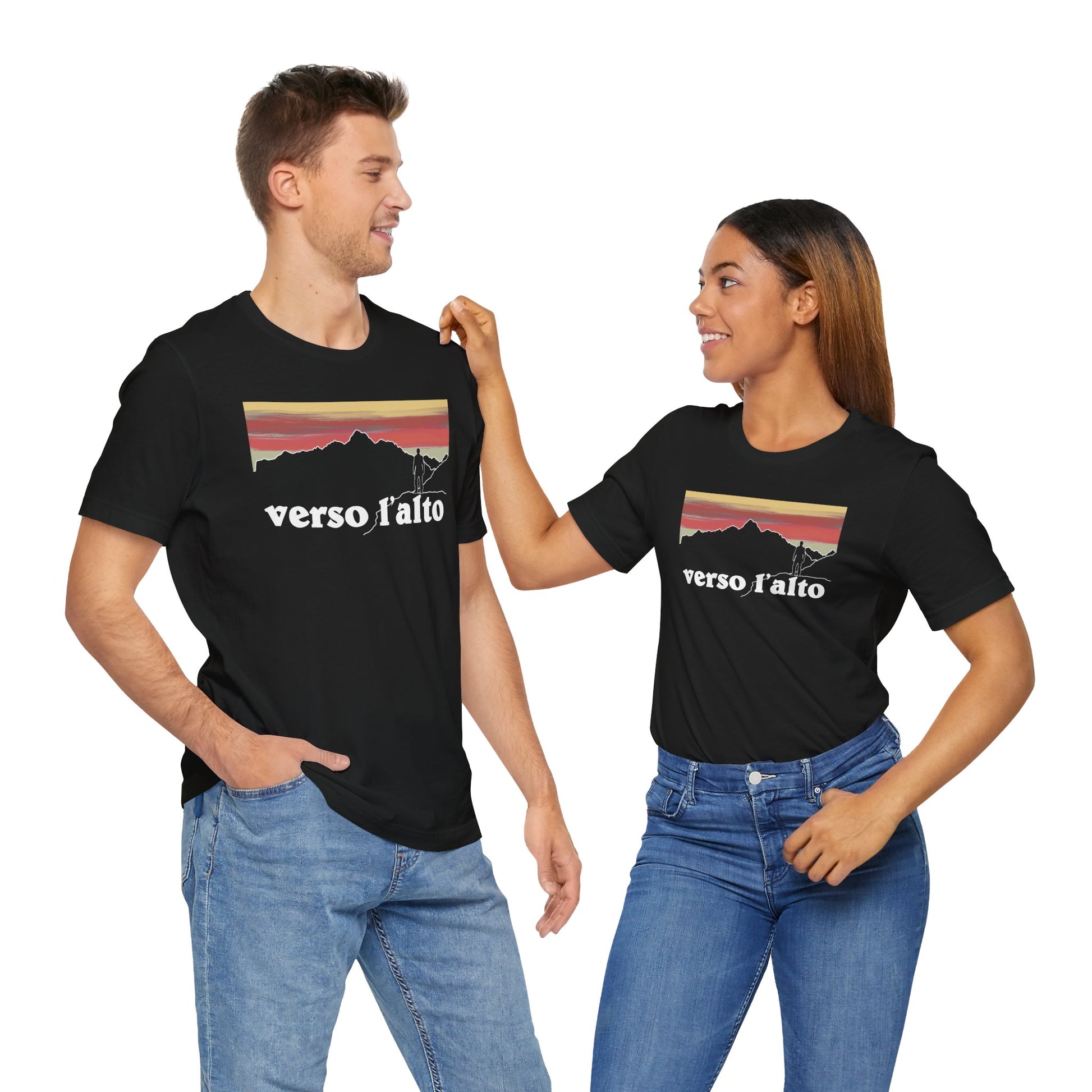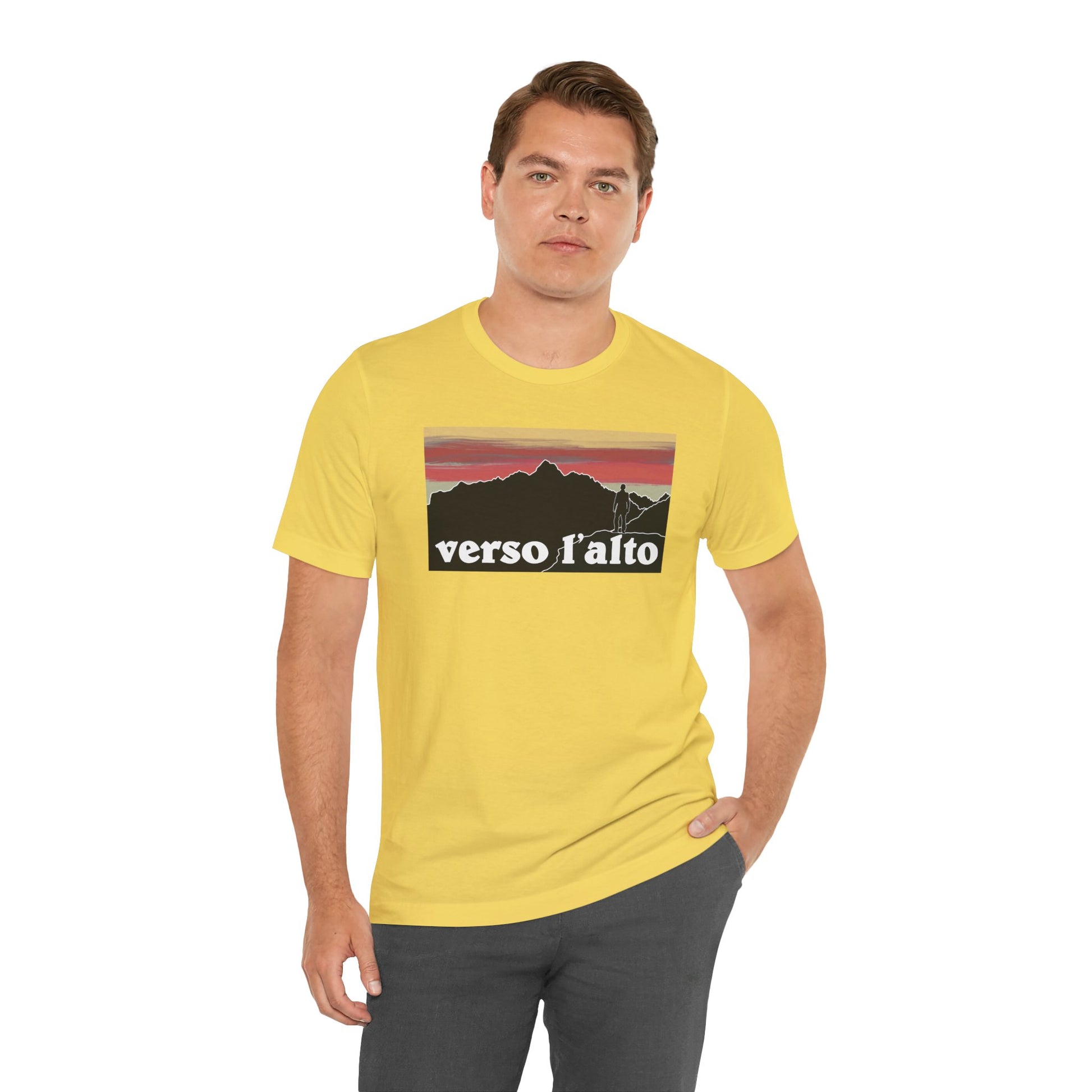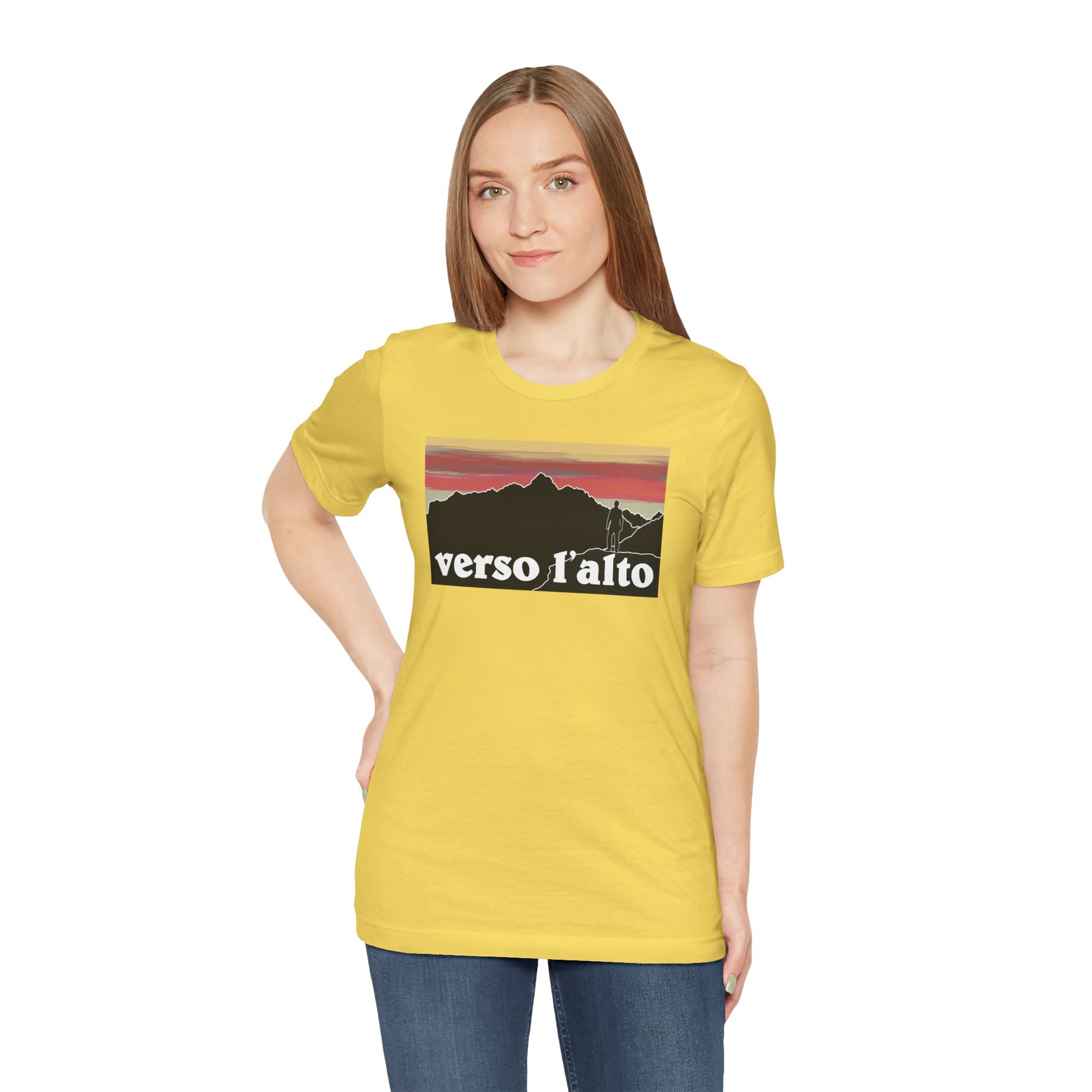 Climb higher in both style and spirit with this Verso l’Alto short sleeve t-shirt, inspired by St. Pier Giorgio Frassati’s famous motto, “To the heights.” Whether you’re hiking the trails, heading to class, or gathering with friends, this tee reminds you to live boldly and faithfully.